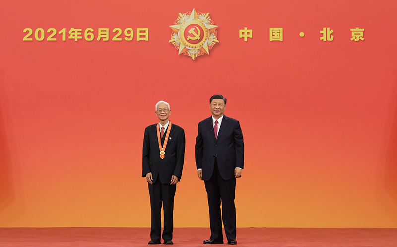 6月29日,慶祝中國共產(chǎn)黨成立100周年“七一勛章”頒授儀式在北京人民大會堂金色大廳隆重舉行。中共中央總書記、國家主席、中央軍委主席習(xí)近平向“七一勛章”獲得者呂其明頒授勛章。新華社記者 李學(xué)仁 攝