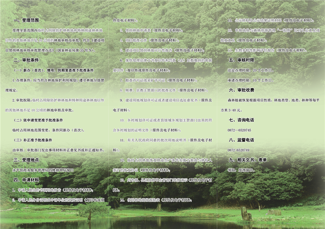 大理市永平縣林業(yè)和草原局臨時占用林地審批辦事指南