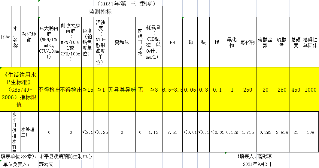 大理市永平縣城市水源水水質(zhì)信息