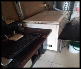 4、儲藏區(qū)物品雜亂,柜內(nèi)肉食裸露存放,衛(wèi)生條件差。