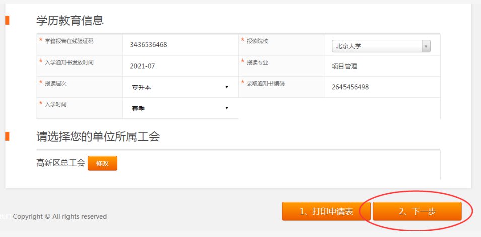 需要填寫的內容:1、基本信息,2、單位信息,3、學歷信息;注意:再次確認單位工會所屬的區(qū)總工會,產業(yè)、直屬單位工會信息,如有錯誤及時進行修改。