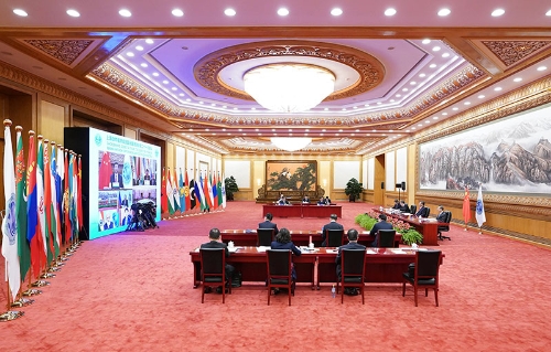 9月17日,國家主席習(xí)近平在北京以視頻方式出席上海合作組織成員國元首理事會第二十一次會議并發(fā)表重要講話。新華社記者 劉彬 攝