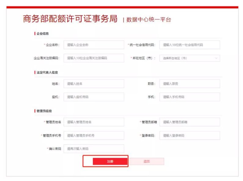 輸入企業(yè)信息,如企業(yè)名稱、企業(yè)簡(jiǎn)稱、18位統(tǒng)一社會(huì)信用代碼、所在地區(qū)、法人、管理員等信息。