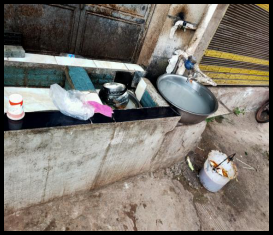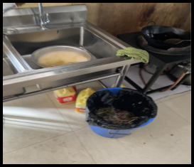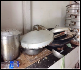 4.餐廚用具清洗不及時,泔水桶未帶蓋。