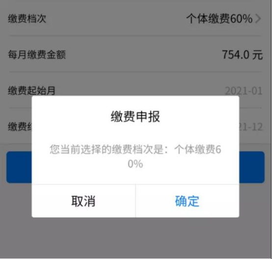 第三步:默認(rèn)繳費(fèi)檔次60%,點(diǎn)擊“確認(rèn)”