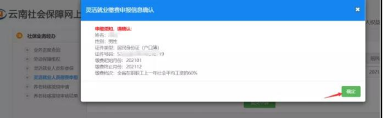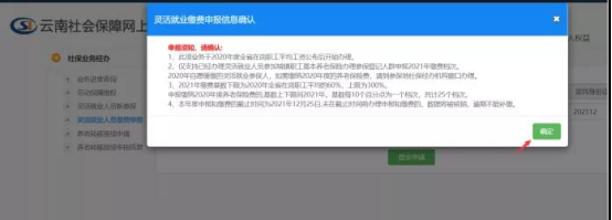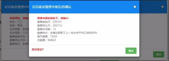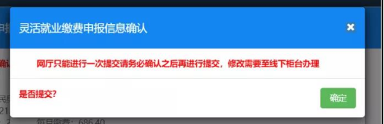第三步:確認(rèn)信息無誤后,點(diǎn)擊提交申請,會有多次的繳費(fèi)申報(bào)信息確認(rèn)提示,核實(shí)無誤后,點(diǎn)擊“確定”。