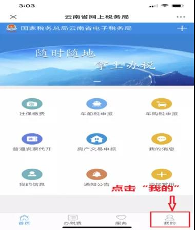 第一步:微信關(guān)注“云南省電子稅務(wù)局”,進(jìn)入主界面