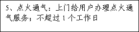 對已具備通氣條件客戶可預約點火,3個工作日內(nèi)完成點火開通服務。 |