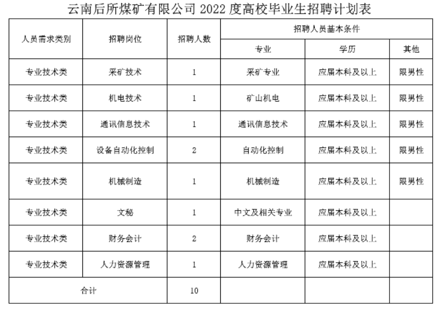實行網(wǎng)上應聘報名,報名郵箱:1024018498@qq.com。應聘人員需如實填寫《云南后所煤礦有限公司應聘報名表》,同時提供本人身份證、畢業(yè)證、資格證書、獲獎證書等相關(guān)材料掃描件。報名截止時間2022年8月30日。