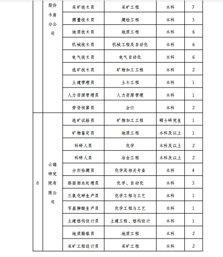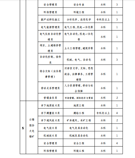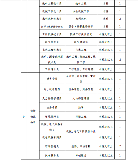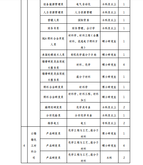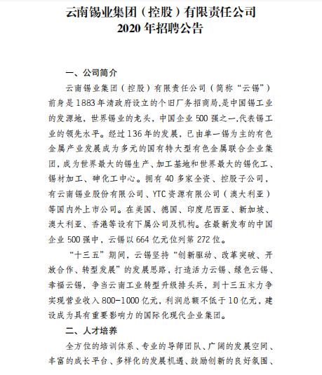 云南錫業(yè)集團(tuán)(控股)有限責(zé)任公司2020年招聘公告