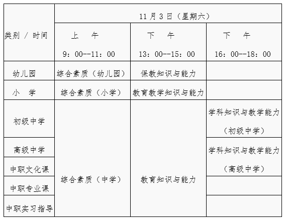 2018年下半年中小學(xué)教師資考試(筆試)日程安排表