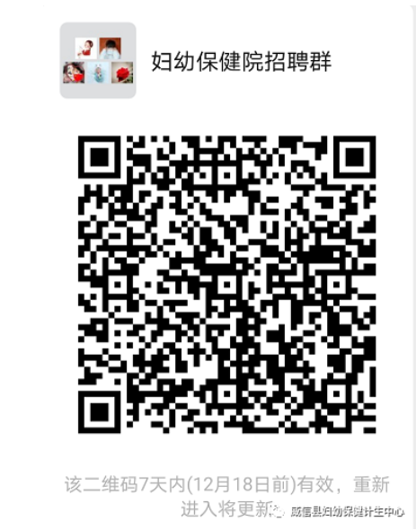 (三)請各位報考人員掃碼加入“婦幼保健院招聘群”下載招聘報名表: