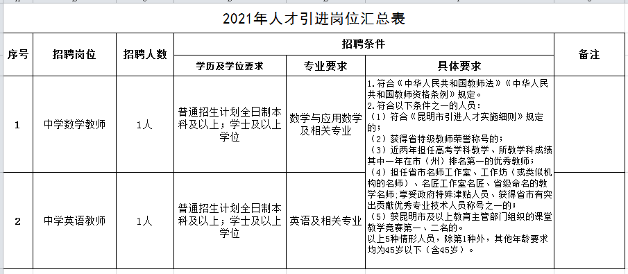 為加強學(xué)校教師隊伍建設(shè),引進優(yōu)秀師資,進一步滿足人民群眾對優(yōu)質(zhì)教育資源的需求,根據(jù)我校教育教學(xué)工作需要,面向社會引進省內(nèi)、外優(yōu)秀中學(xué)數(shù)學(xué)教師1人、英語教師1人。通過人才引進的教師解決編制,納入昆明市事業(yè)單位人員管理。現(xiàn)將有關(guān)事項公告如下: