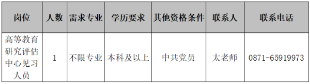 云南中醫(yī)藥大學(xué)高等教育研究評估中心2022年見習(xí)崗位招聘公告