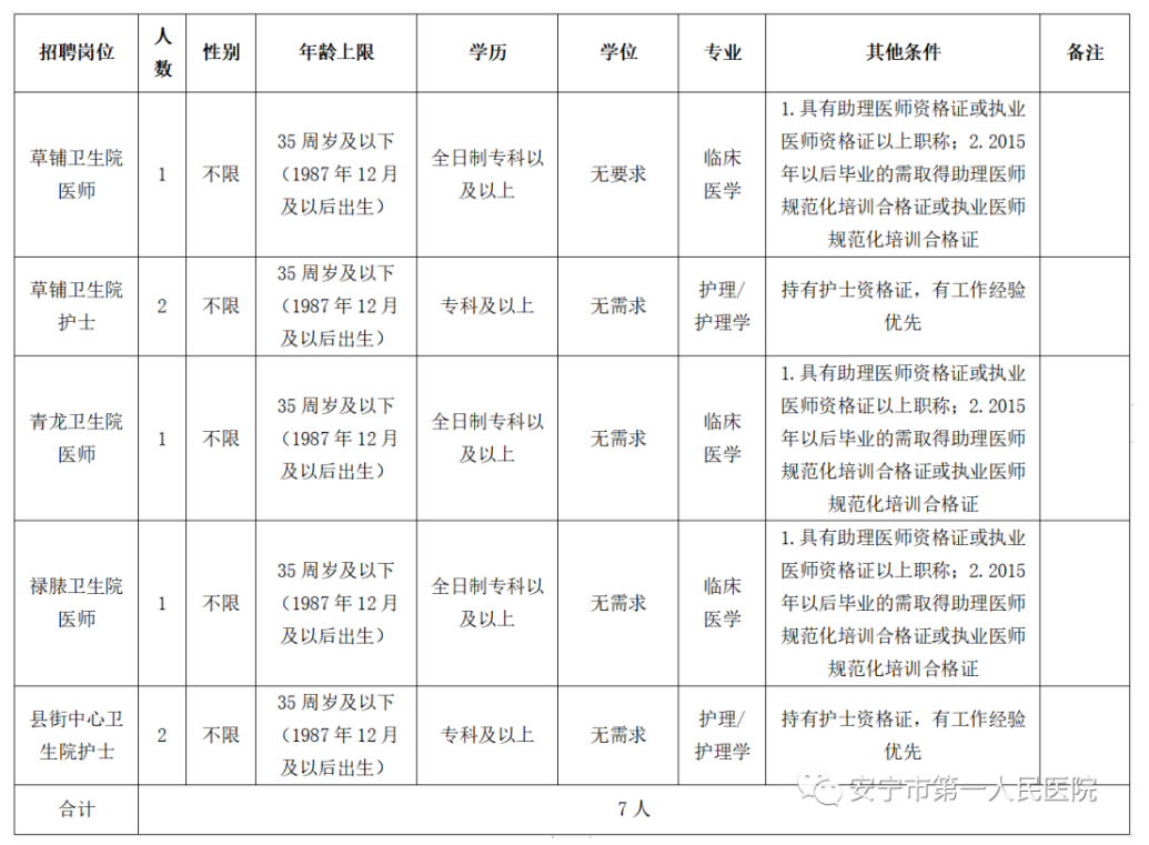 現(xiàn)醫(yī)共體下安寧市草鋪衛(wèi)生院(草鋪衛(wèi)生院衛(wèi)生院建筑面積1632平方米,距離安寧市中心6.8公里。開設(shè)診療科目包含預(yù)防保健科、全科醫(yī)療科、內(nèi)科、外科、婦產(chǎn)科、兒科、醫(yī)學(xué)檢驗科、醫(yī)學(xué)影像科、中醫(yī)科、中西醫(yī)結(jié)合科,編制床位20張,衛(wèi)生院擁有一支較高素質(zhì)的業(yè)務(wù)隊伍,以“精湛的技術(shù),一流的服務(wù)”,贏得了當(dāng)?shù)匕傩占吧鐣鹘绲囊恢潞迷u,下轄草鋪、麒麟、青龍哨、柳樹、邵九、王家灘六個村衛(wèi)生室)、安寧市青龍衛(wèi)生院(青龍衛(wèi)生院位于安寧市青龍街道龍翔路,距離市區(qū)25公里,占地5畝,建筑面積1800平方米。開設(shè)診療科目包括內(nèi)科、兒科、外科、婦產(chǎn)科、中醫(yī)科、醫(yī)學(xué)影像科、醫(yī)學(xué)檢驗科、預(yù)防保健科,編制床位30張)、安寧市祿脿衛(wèi)生院(祿脿衛(wèi)生院位于安寧市祿脿街道新驛路,醫(yī)院設(shè)有綜合門診部、綜合住院部、中醫(yī)科、心腦血管救治站及慢性病管理中心,現(xiàn)有編制床位40張,實際開放60張,下設(shè)7個村衛(wèi)生室)和安寧市縣街中心衛(wèi)生院(縣街中心衛(wèi)生院位于安寧市縣街街道梨河路32號,提供預(yù)防、康復(fù)、保健、健康教育、基本醫(yī)療、中醫(yī)、計劃生育技術(shù)指導(dǎo)等綜合服務(wù),現(xiàn)有編制床位42張,下設(shè)10個村衛(wèi)生室)因工作需要,面向社會招聘非事業(yè)編工作人員。