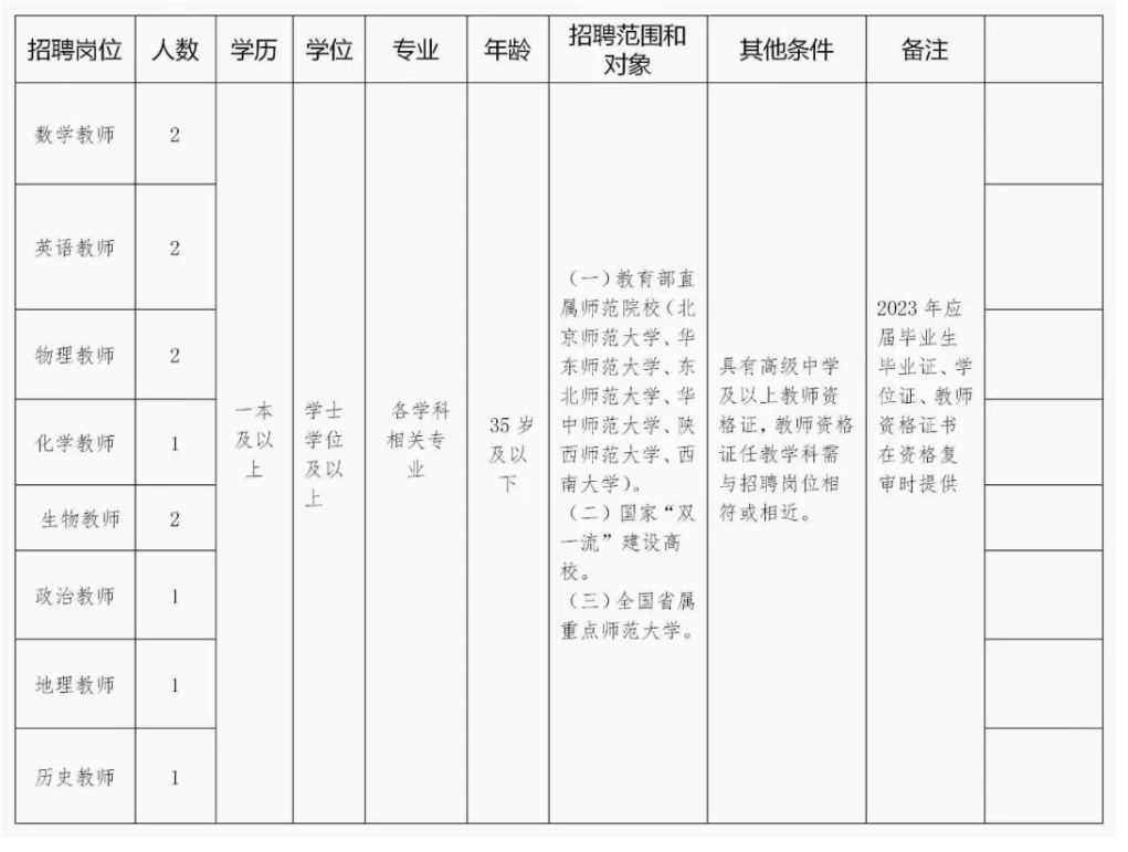 云南省保山第一中學2023年2月公開招聘教師8個崗位共12人,具體崗位如下: