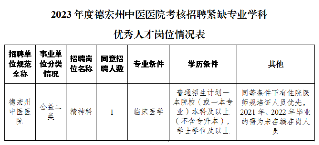 德宏州中醫(yī)醫(yī)院2023年考核招聘緊缺專業(yè)學科優(yōu)秀人才公告