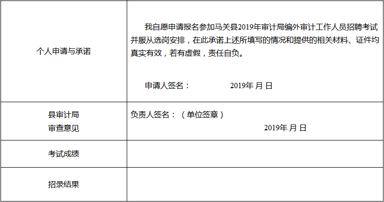 2019年馬關(guān)縣審計(jì)局公開招聘編外審計(jì)工作人員報(bào)名表