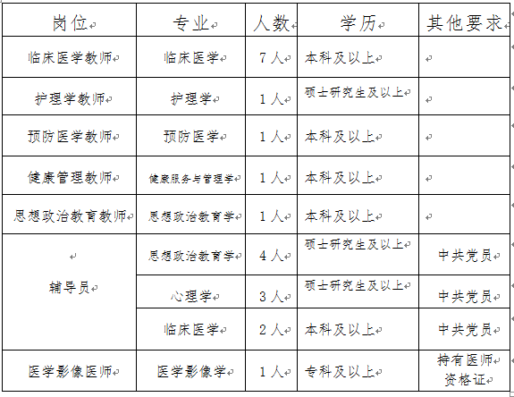 (七)教師和輔導(dǎo)員崗位年齡在40周歲以下(1979年5月后出生),醫(yī)學(xué)影像學(xué)崗位年齡不限。