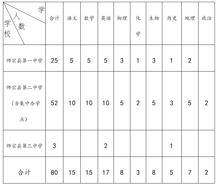 為加強(qiáng)師宗縣教師隊(duì)伍建設(shè),經(jīng)縣委、縣政府同意,曲靖市師宗縣教育體育局決定面向全國(guó)師范大學(xué)類本科大學(xué)(不包含師范類學(xué)院)(名單見附件1)2020年畢業(yè)的優(yōu)秀學(xué)生,公開招聘中學(xué)教師80名,現(xiàn)公告如下。