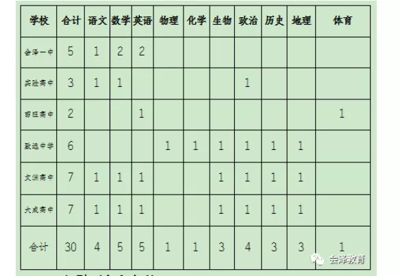 為加強全縣高中學(xué)校教師隊伍建設(shè),經(jīng)請示縣委、縣政府和曲靖市教育體育局同意,會澤縣教育體育局決定,面向曲靖師范學(xué)院優(yōu)秀畢業(yè)生,通過公開考試、考核招聘高中教師,F(xiàn)將有關(guān)事項公告如下: