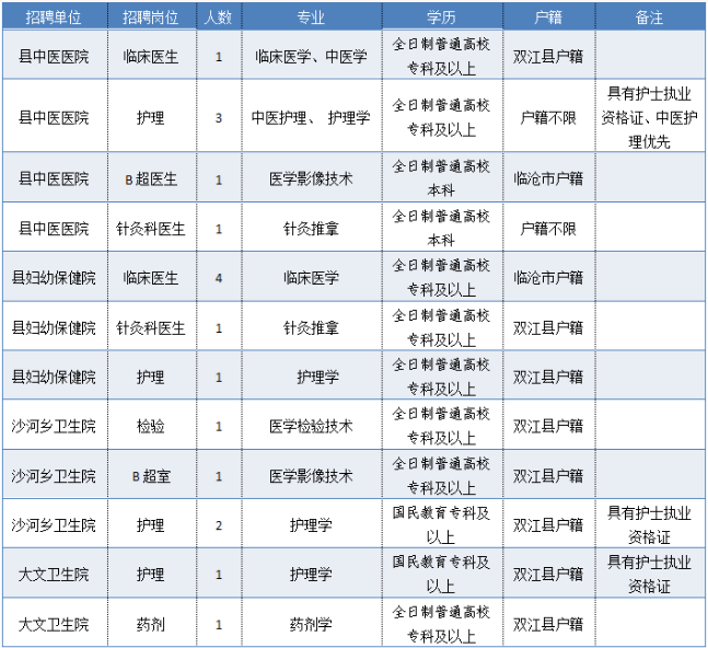 臨滄市雙江自治縣醫(yī)共體總醫(yī)院2020年編外工作人員招聘公告